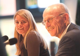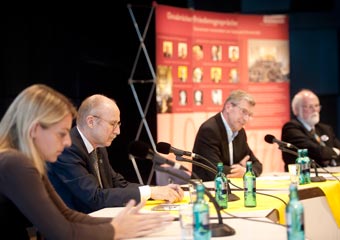 Nia Künzer, Willi Lemke, Moderator Christian Wopp,